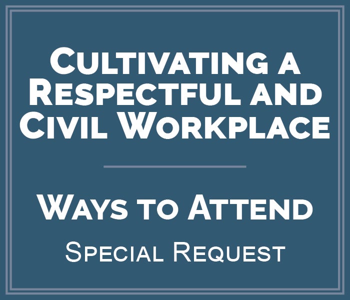 If you believe that your workplace is in danger of becoming one characterized by a lack of compassion, politeness, and courtesy, sign up today for Cultivating a Respectful and Civil Workplace: A Manager's Guide.