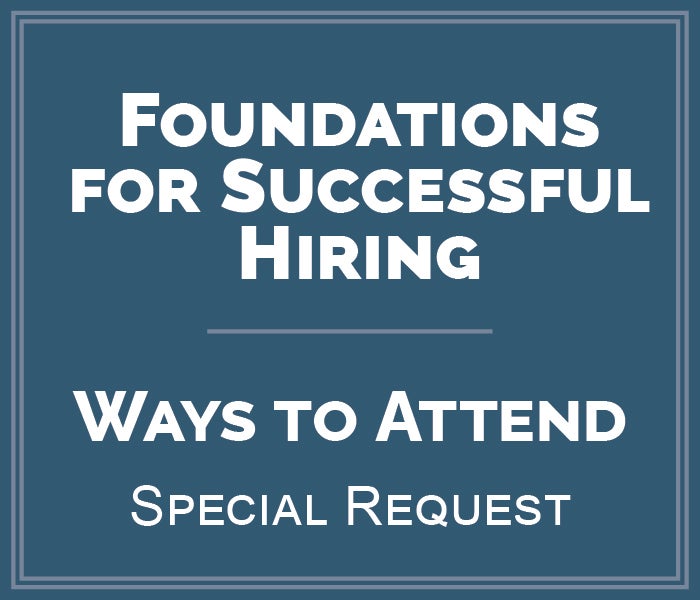 Take charge of your role in the process and enroll in Foundations for Successful Hiring: From Identifying Needs to Working the Register. You will learn about the steps involved with the hiring process, how to make better hiring decisions to fill your vacancies with the right people, and how to navigate your part of the hiring process efficiently.