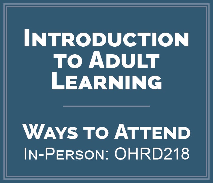A recommended prerequisite to OHRD’s four-day Train-the-Trainer program, Introduction to Adult Learning will examine: